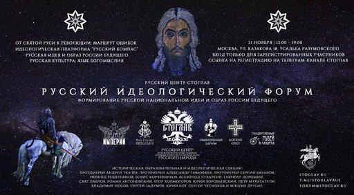 21 ноября 2025 года в Москве в усадьбе графа Разумовского состоялся 1-й Русский Идеологический Форум, который был посвящён соборной Идее триединой Русской нации и Образу Русского мира будущего. Инициатором и основным организатором стал Центр возрождения культурных традиций, духовных ценностей и соборных начал Русского народа СТОГЛАВ ( https://www.stoglav.ru/ , https://t.me/stoglavrus ).